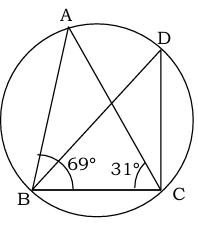 Q2. In figure angle ∠ABC = 69° and angle ∠ACB =31° find ∠BDC. Most important