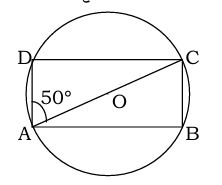Q6. In cyclic quadrilateral ABCD, AOC is the diameter of circle. Ir ∠CAD = 50°, then ∠ACD is :
