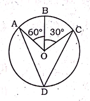 Q6. In fig., A, B and C are three points on a circle with centre O such that ∠BOC = 30° and ∠AOB = 60°. If D is a point on the circle other than the are ABC, then ∠ADC will be: